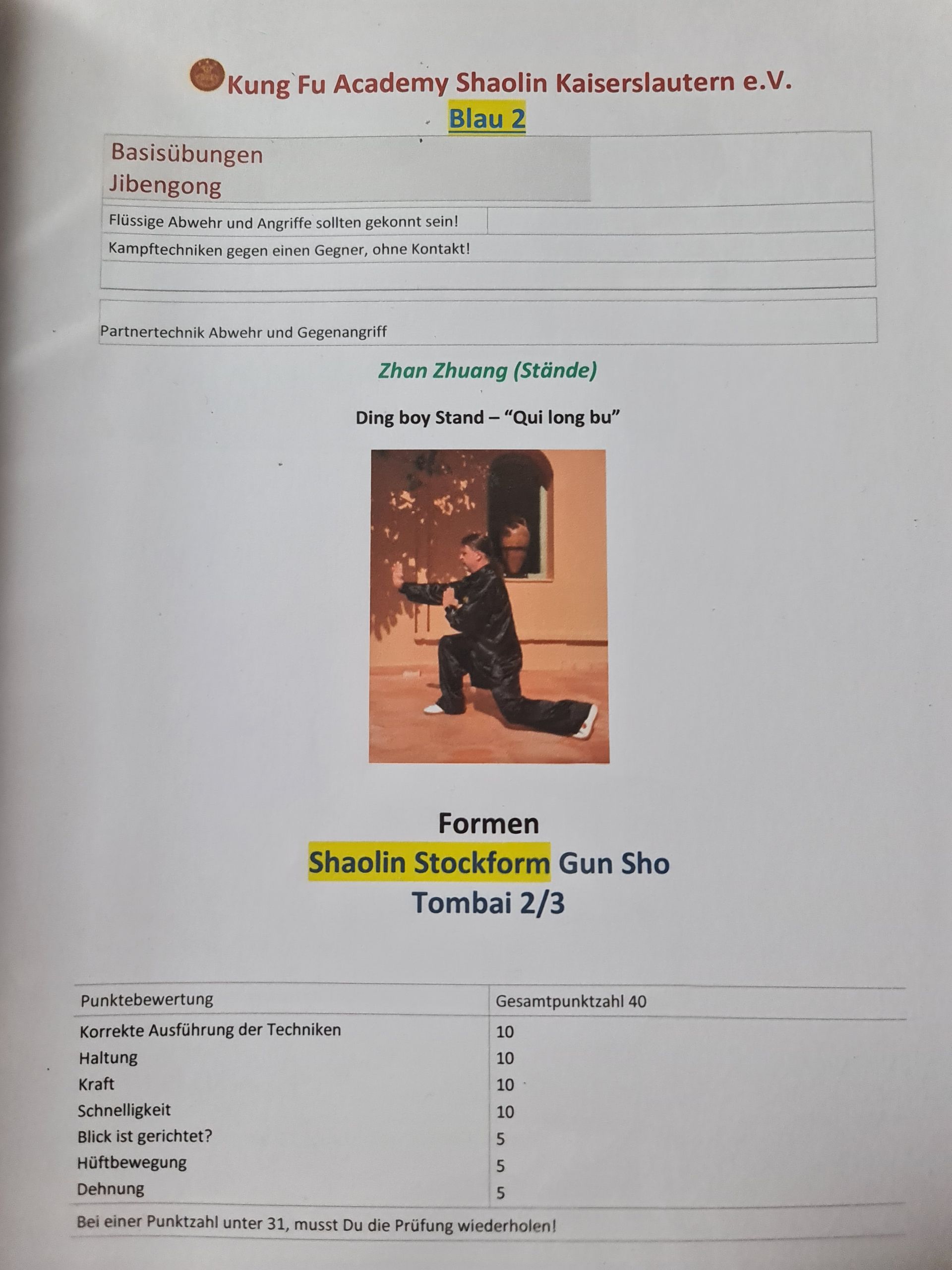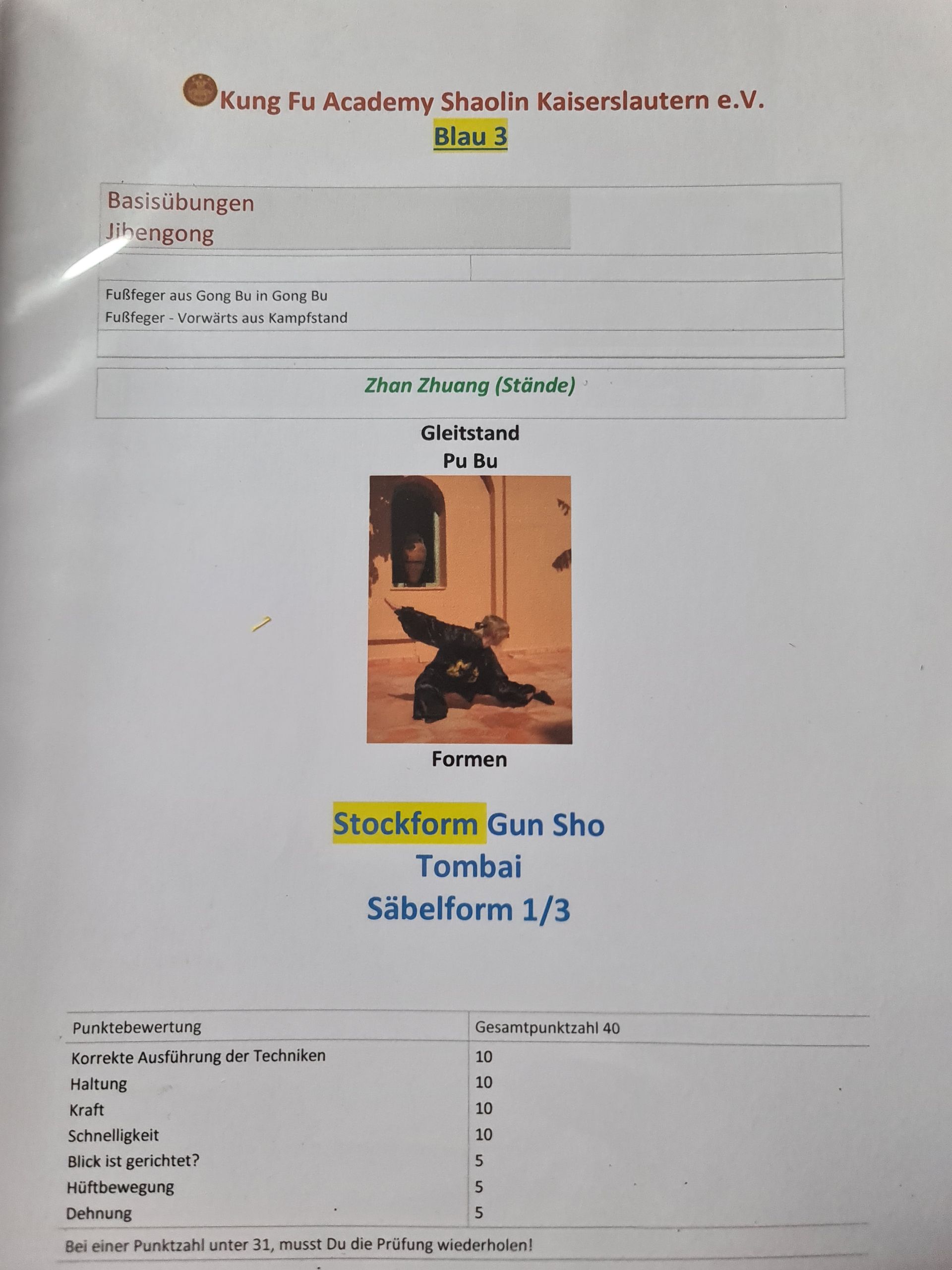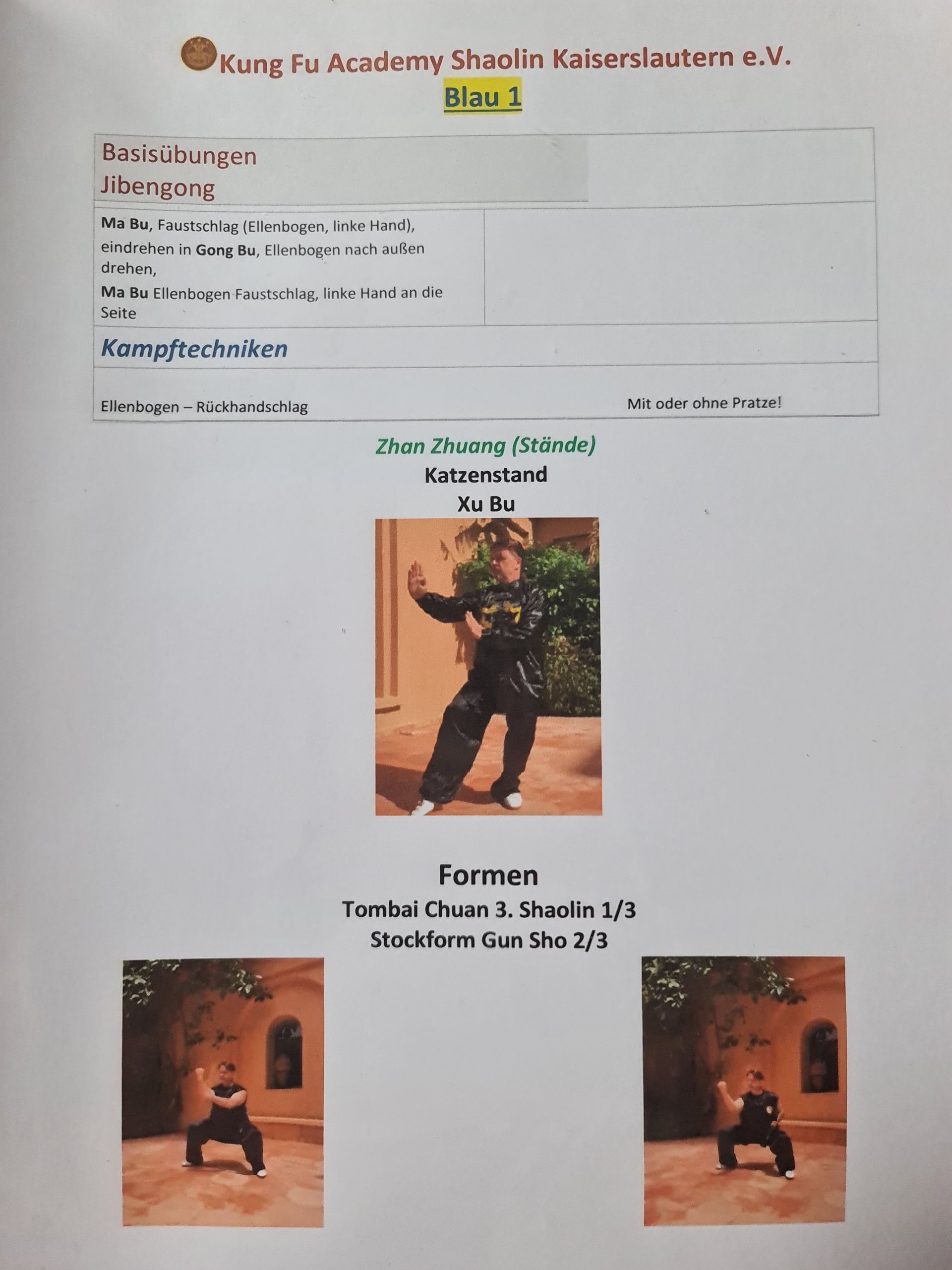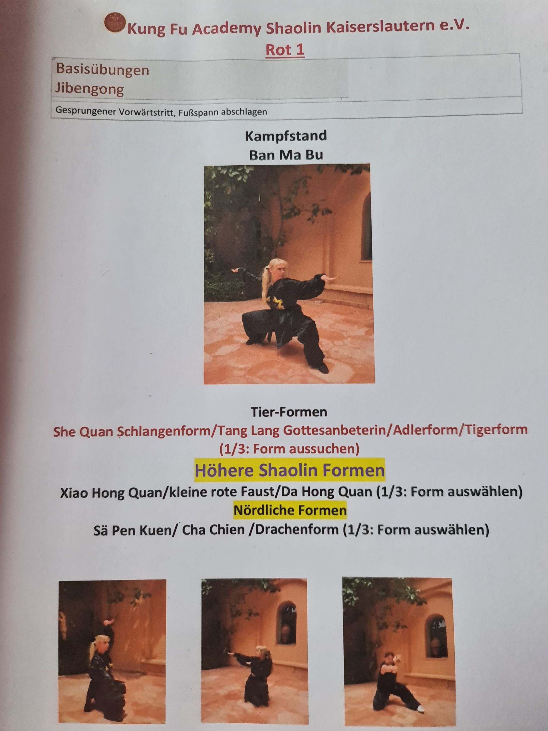 Gewünscht sind die ersten drei Formen des Kung Fu für Basis Stände