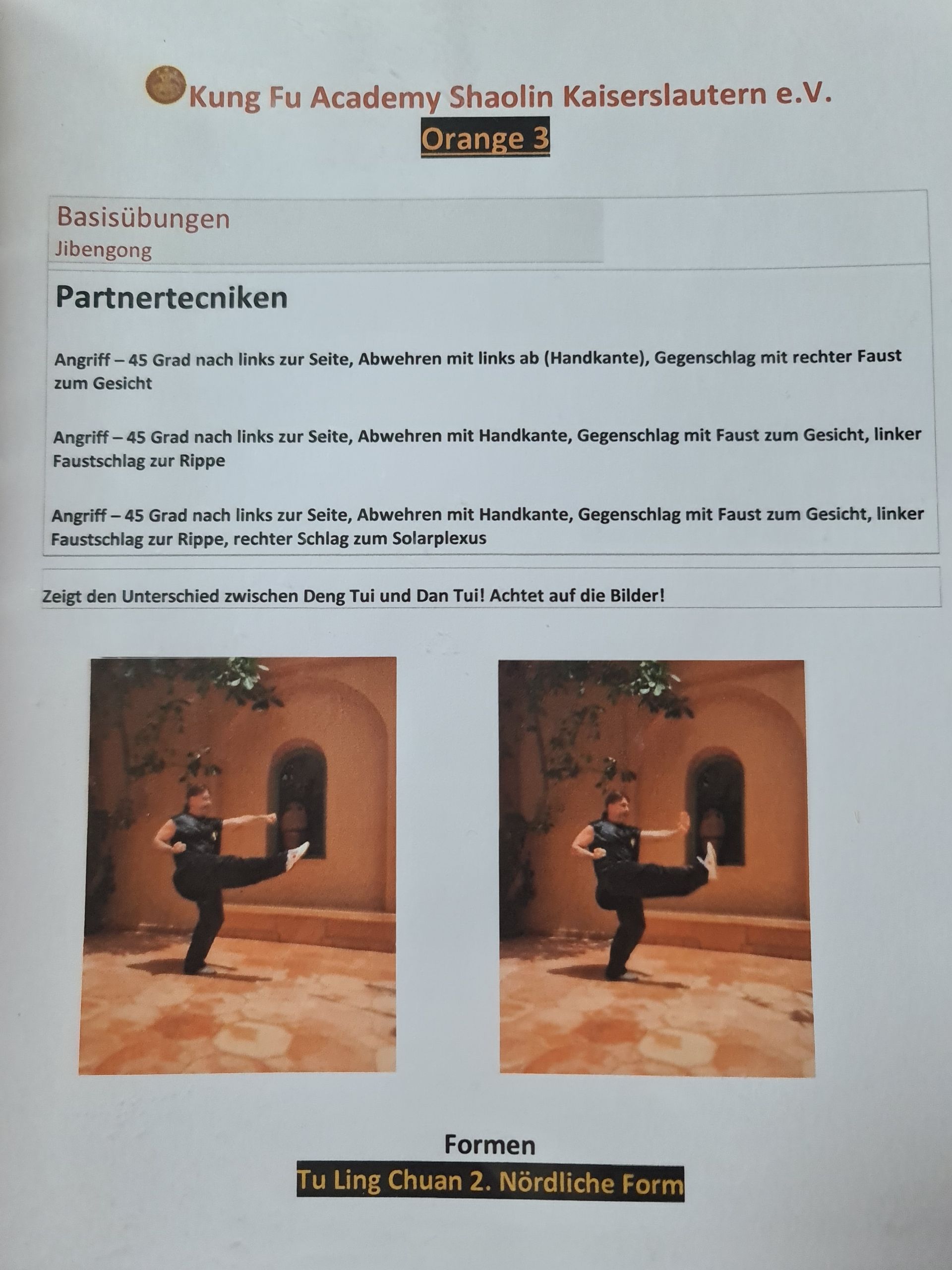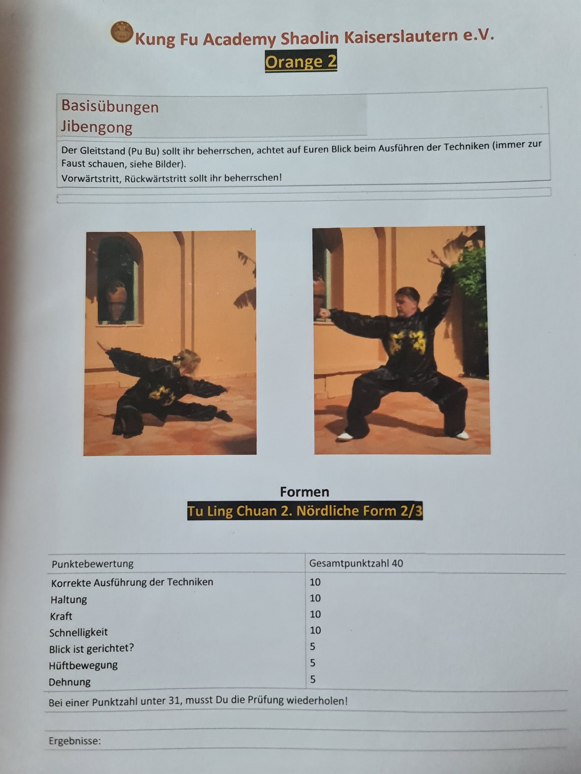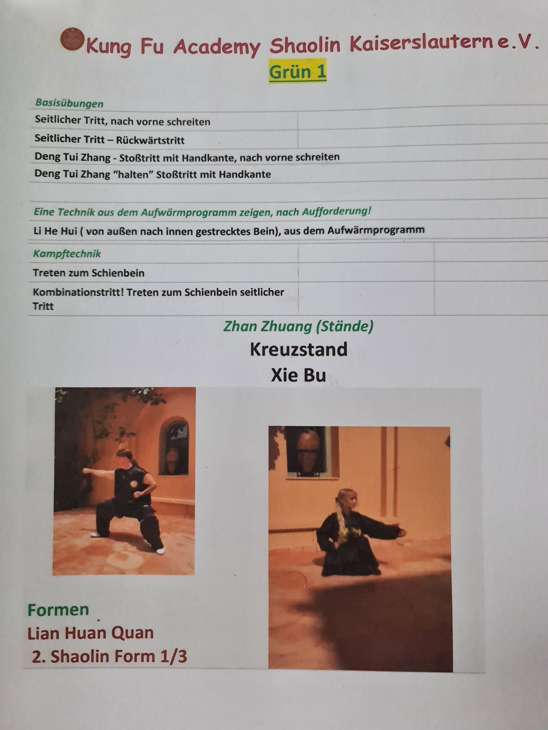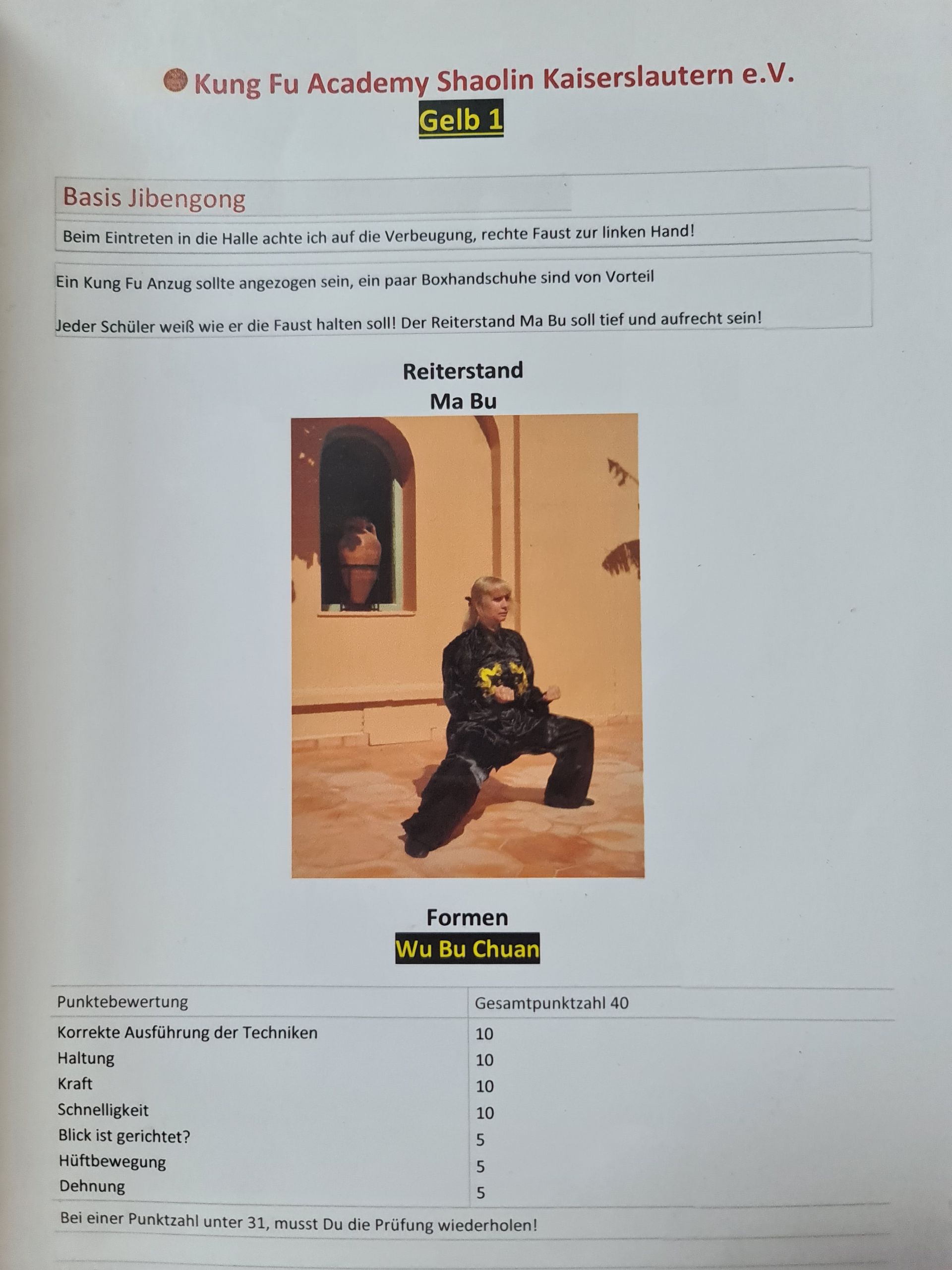 Gewünscht sind die ersten drei Formen des Kung Fu für Basis Stände
