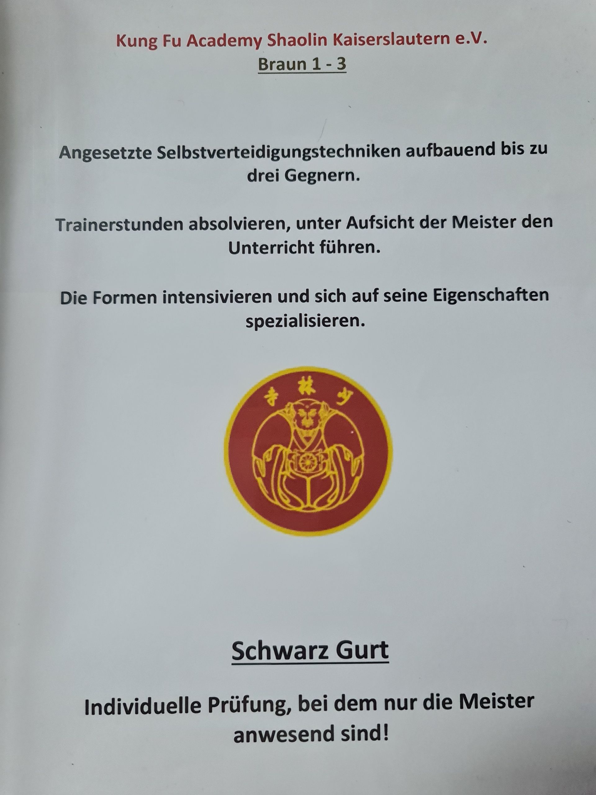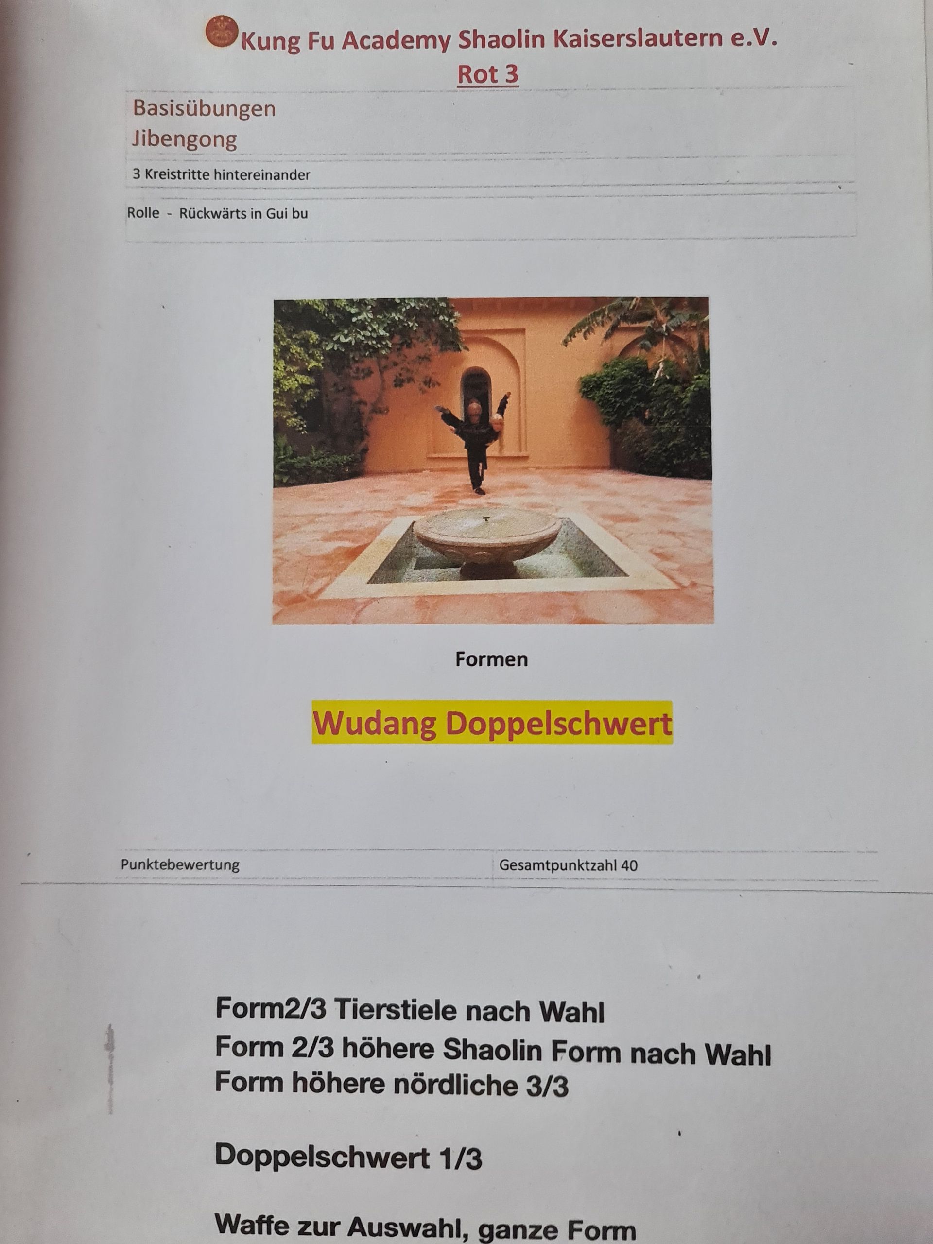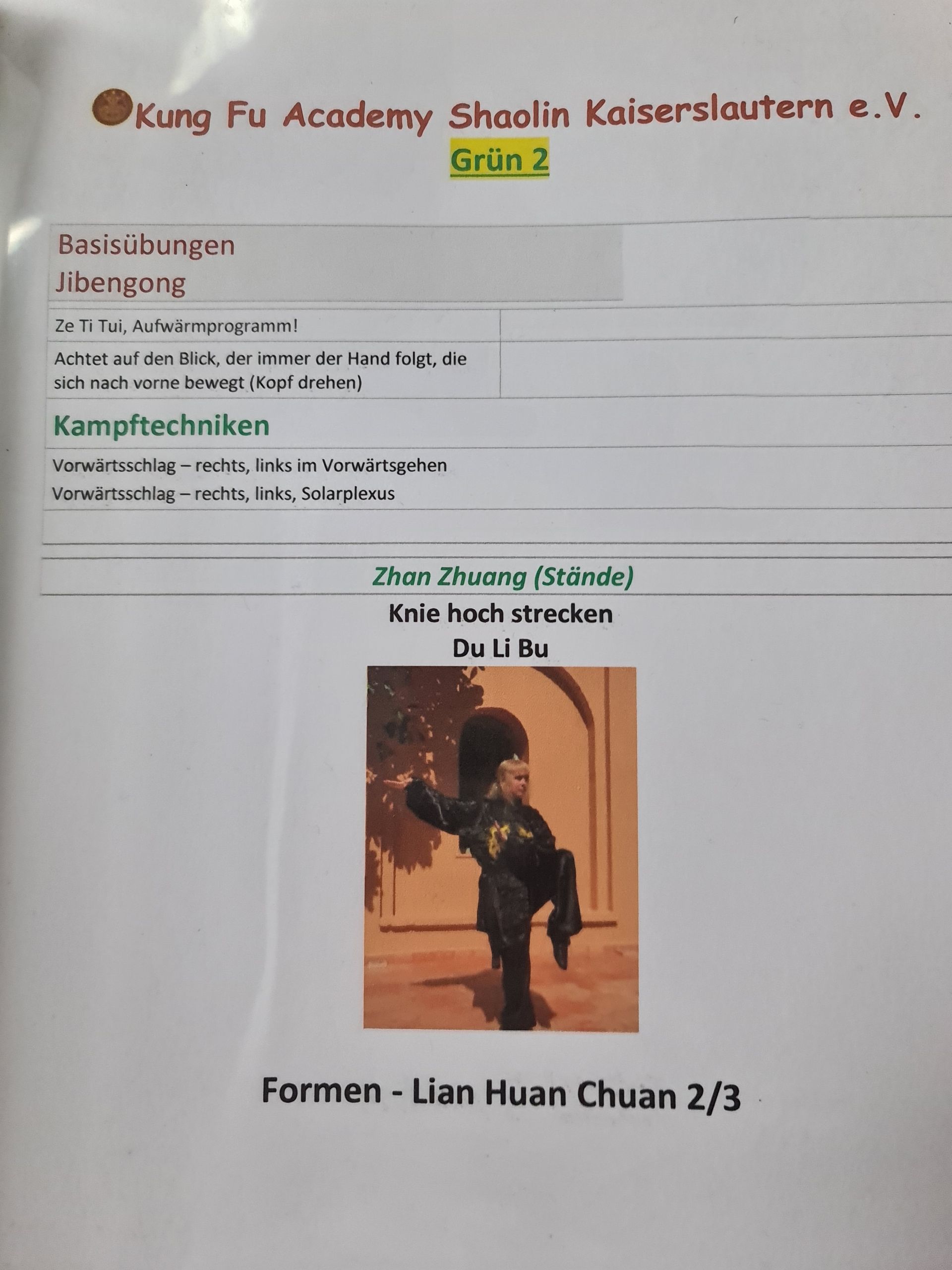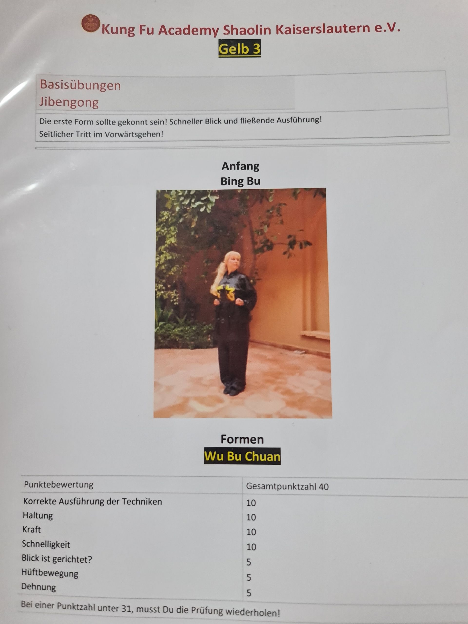 Gewünscht sind die ersten drei Formen des Kung Fu für Basis Stände